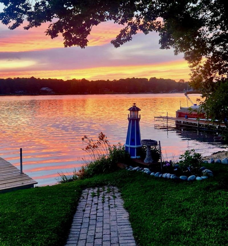 Charming 1956 Cedar Lake Cottage with Knotty Pine Interior! This delightful home currently offers two bedrooms along with an office that can be easily converted into three bedrooms. Enjoy 1,265 square feet of cozy living space on the east side of Cedar Lake, featuring 51 feet of waterfront frontage and a deep back lot measuring 741 feet. Additionally, the property spans almost a full acre which includes the parcel across the street, which features a three-car pole barn located across the street, perfect for storage and parking. Key Features: Modern Comforts: Stay comfortable year-round with a new AC mini split systems (installed within the past year) and a pellet stove for added ambience. Recent Upgrades: Newer well pump (3 years old), updated Lakeside slider and windows (installed within the last three years), a new roof, updated electrical system, and fresh paint completed in the past three years. Convenient Amenities: The home boasts a new stackable washer and dryer with a water softener, as well as a newer dishwasher. Warm, Timeless Charm: Original wood flooring throughout the home adds a warm, inviting character, perfectly complemented by charming knotty pine walls that enhance the "Up-North" feel. Outdoor Living: Relax on the expansive 10x30 lakeside deck with resurfaced boards and railings (updated in 2022). A 40-foot roll-in dock stays with the house, offering additional waterfront enjoyment. Don't miss your chance to experience lakeside living at its finest in this beautifully maintained Cedar Lake cottage!