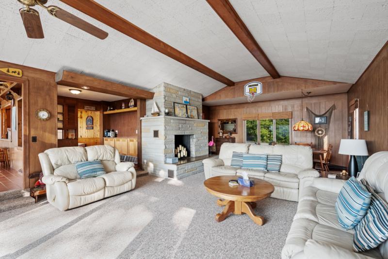 Rustic Waterfront Retreat on Saginaw Bay Enjoy privacy and stunning views of Saginaw Bay from this rustic beachside property with 100' of frontage. Nestled among mature trees and lush plantings, the home features a sandy beach and a recently installed seawall (2019). Relax on the covered front porch or inside the spacious living and family rooms, each with unique finishes including tile and insulated board ceilings, paneling, and ceramic tile flooring. The kitchen showcases knotty pine walls, adding to the rustic charm, while bedrooms offer a cozy mix of cedar and paneling with carpet. The bathroom features ceramic tile and was renovated in 2003. Ample built-in storage throughout. Updates include: Well (2000) Roof shingles (2001) Bathroom renovation (2003) Deck (2004) Furnace and A/C (2005) Garage converted and insulated (2012) Seawall (2019) Encapsulated crawl space by Foundation Systems of Michigan (2019) The heated garage includes an electric opener and serves as an extended family room. A point well is available for lawn watering. Wood casement and double-hung windows throughout. Property dimensions: 50.22' + 50.22' frontage; south side 264.2', middle 268.9', north side 273.6'.